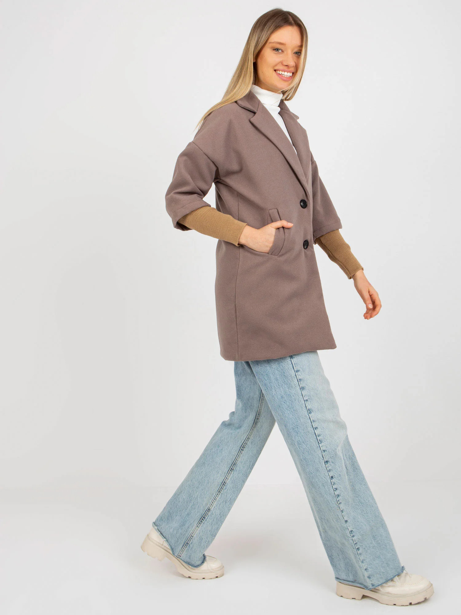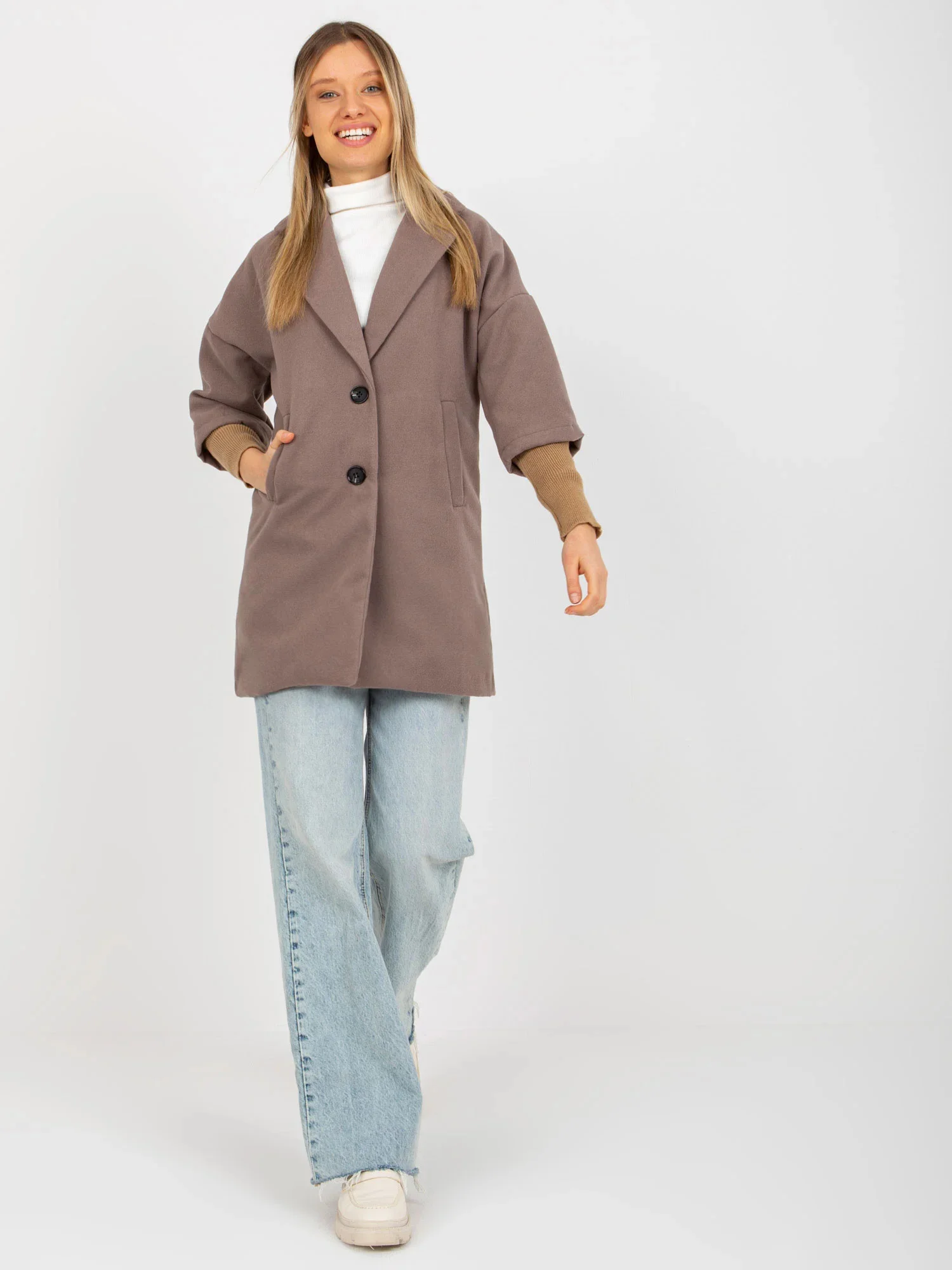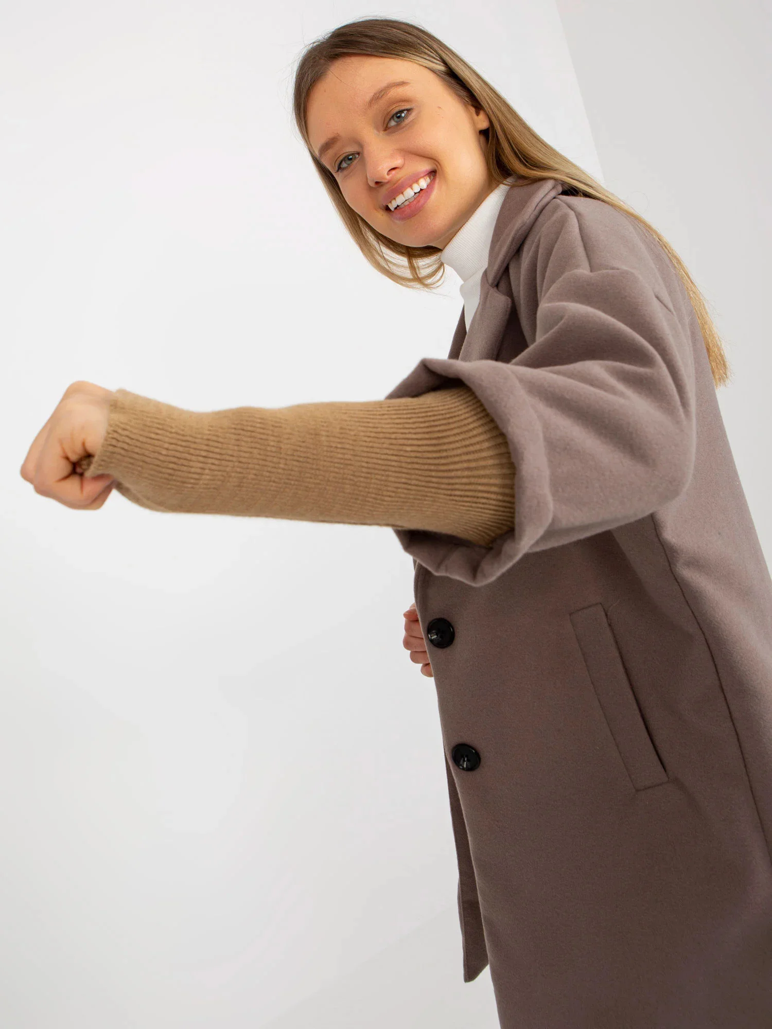 Hnědý kabát s žebrovanými manžetami OCH BELLA .