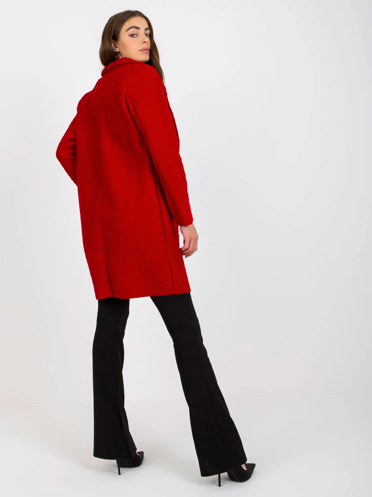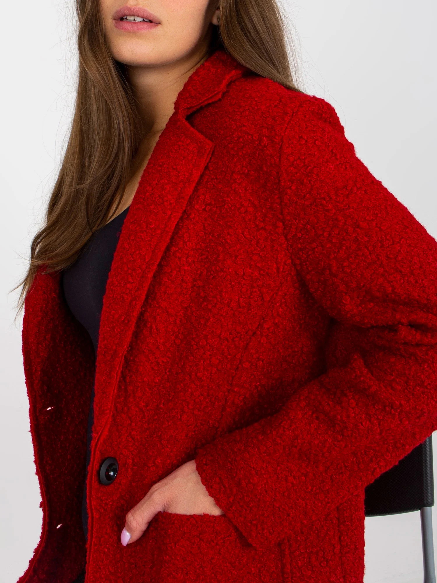Tmavě červený plyšový kabát se zapínáním OCH BELLA .
