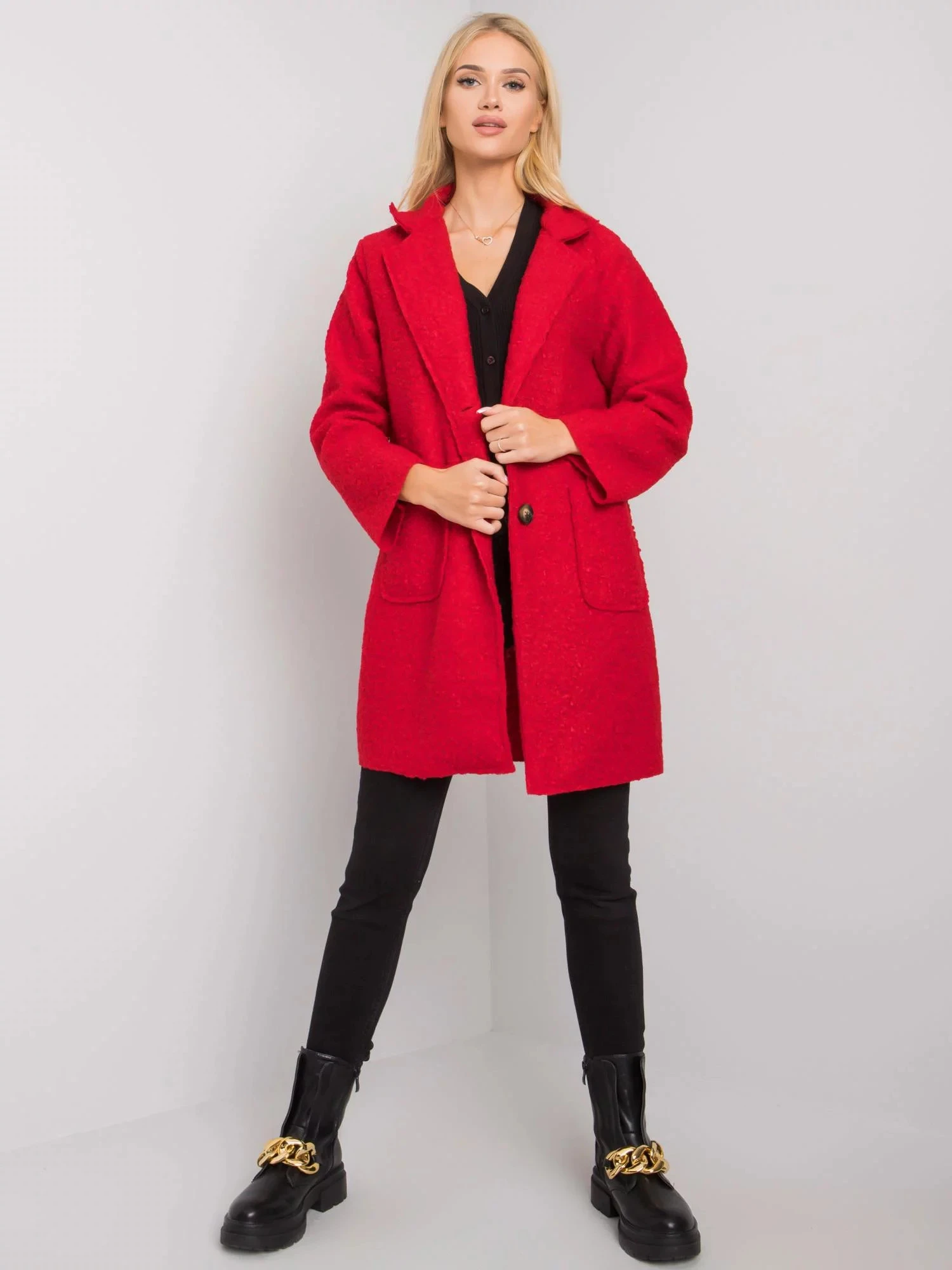 OCH BELLA Červený kabát z bouclé.