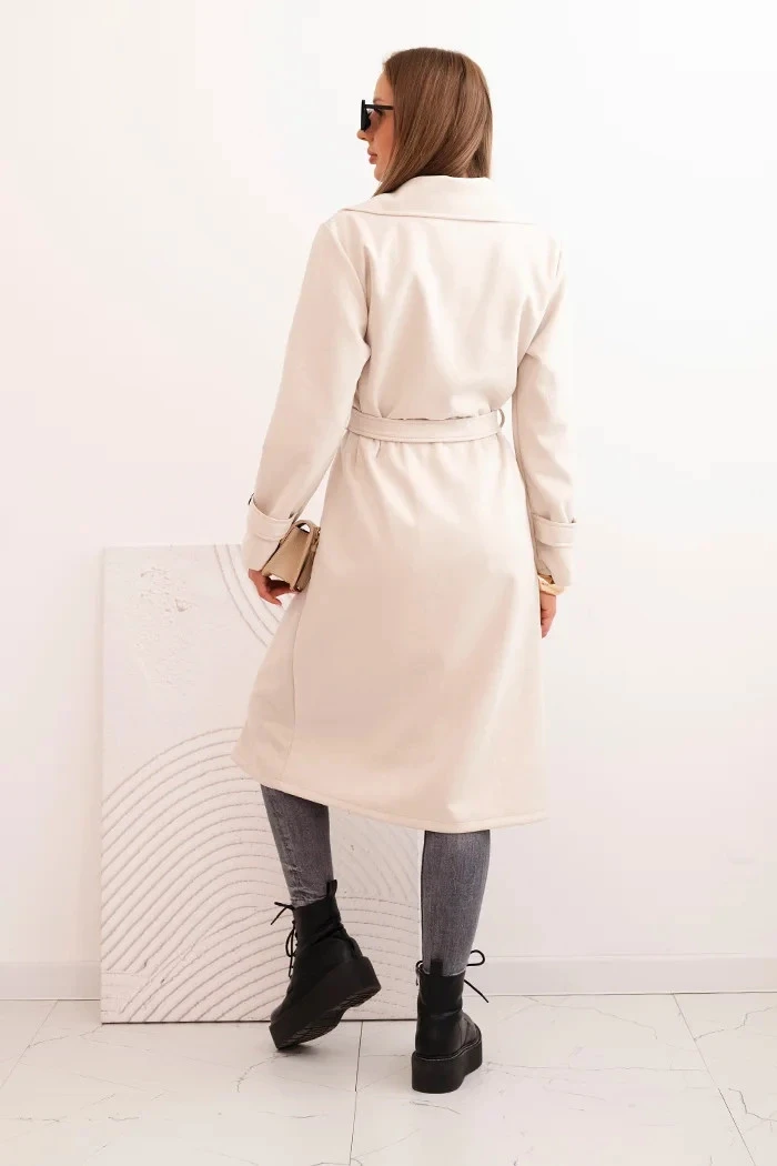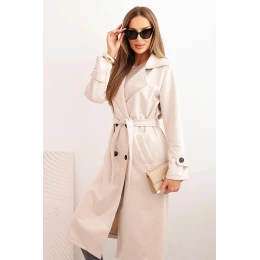 Dámský kabát v pase s límcem a knoflíky světle béžový
