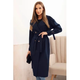 Dámský kabát v pase se zavazováním s límcem model 21239077 - K-Fashion
