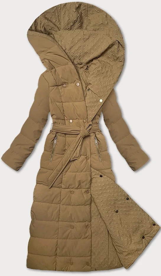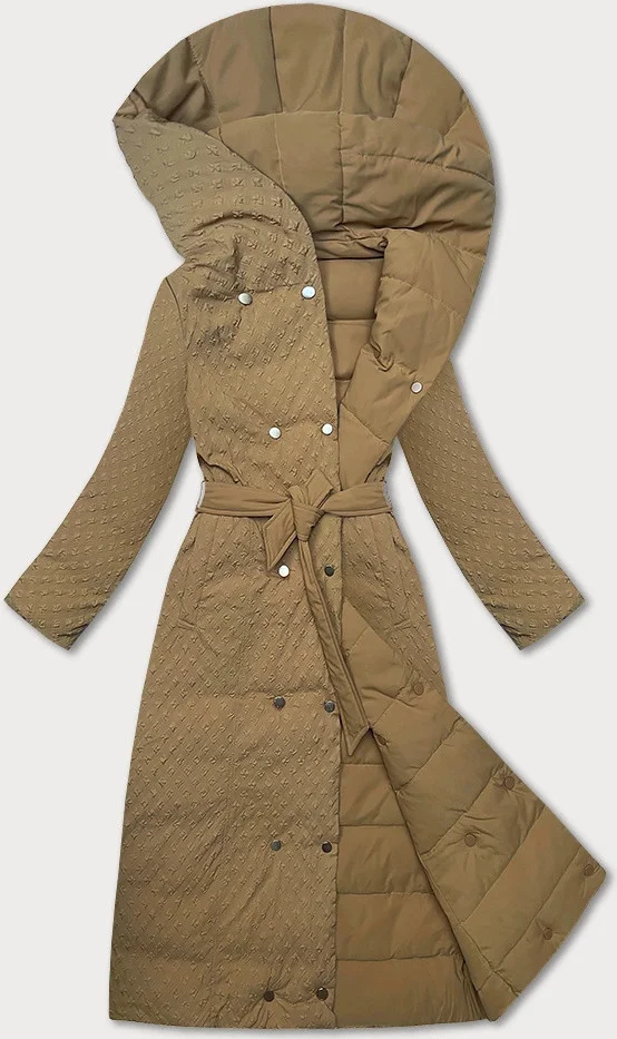 dámský kabát ve velbloudí barvě s páskem model 21248911 - STELLA FASHION