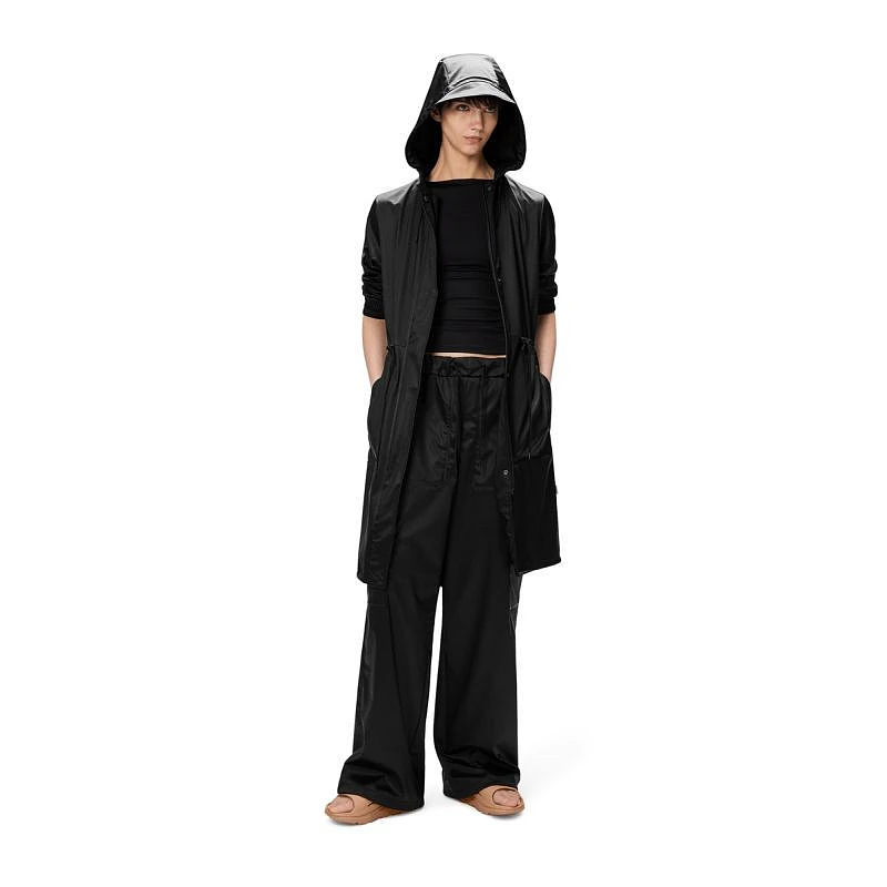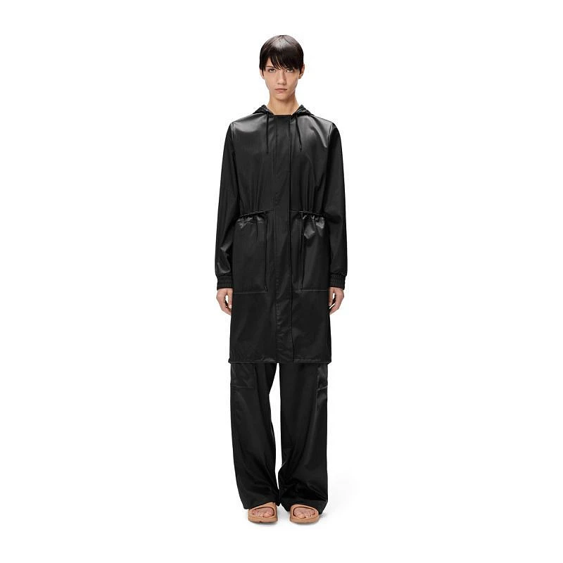 Parka String W je vyrobena z charakteristické PU tkaniny Rains a má svařené švy.