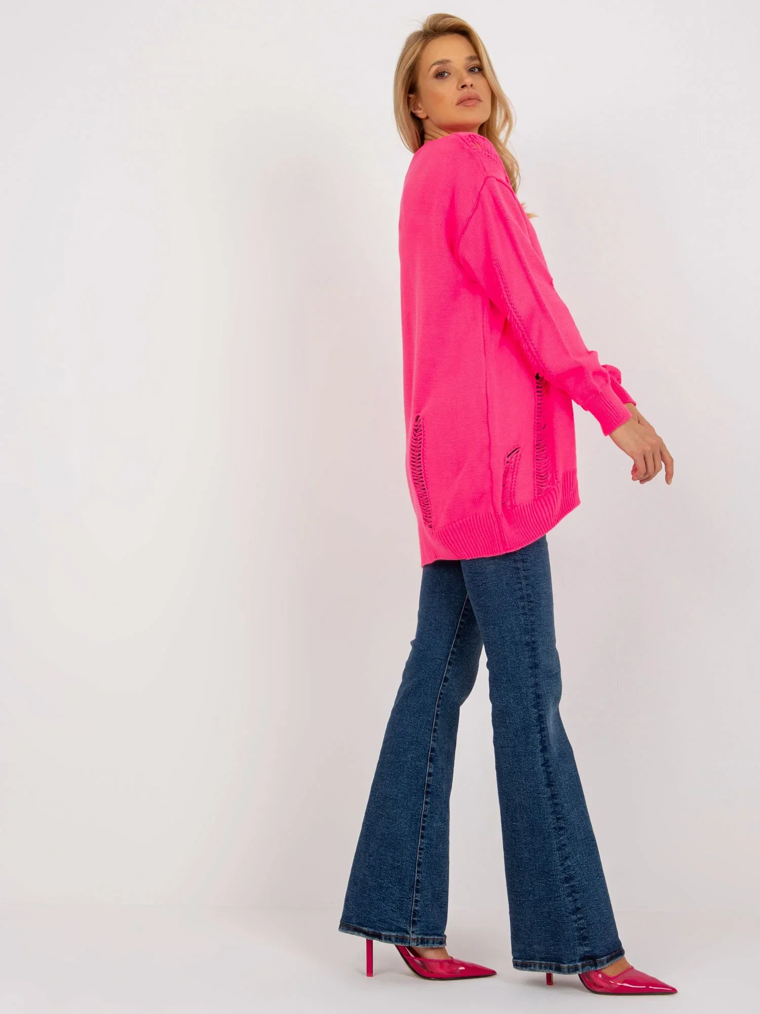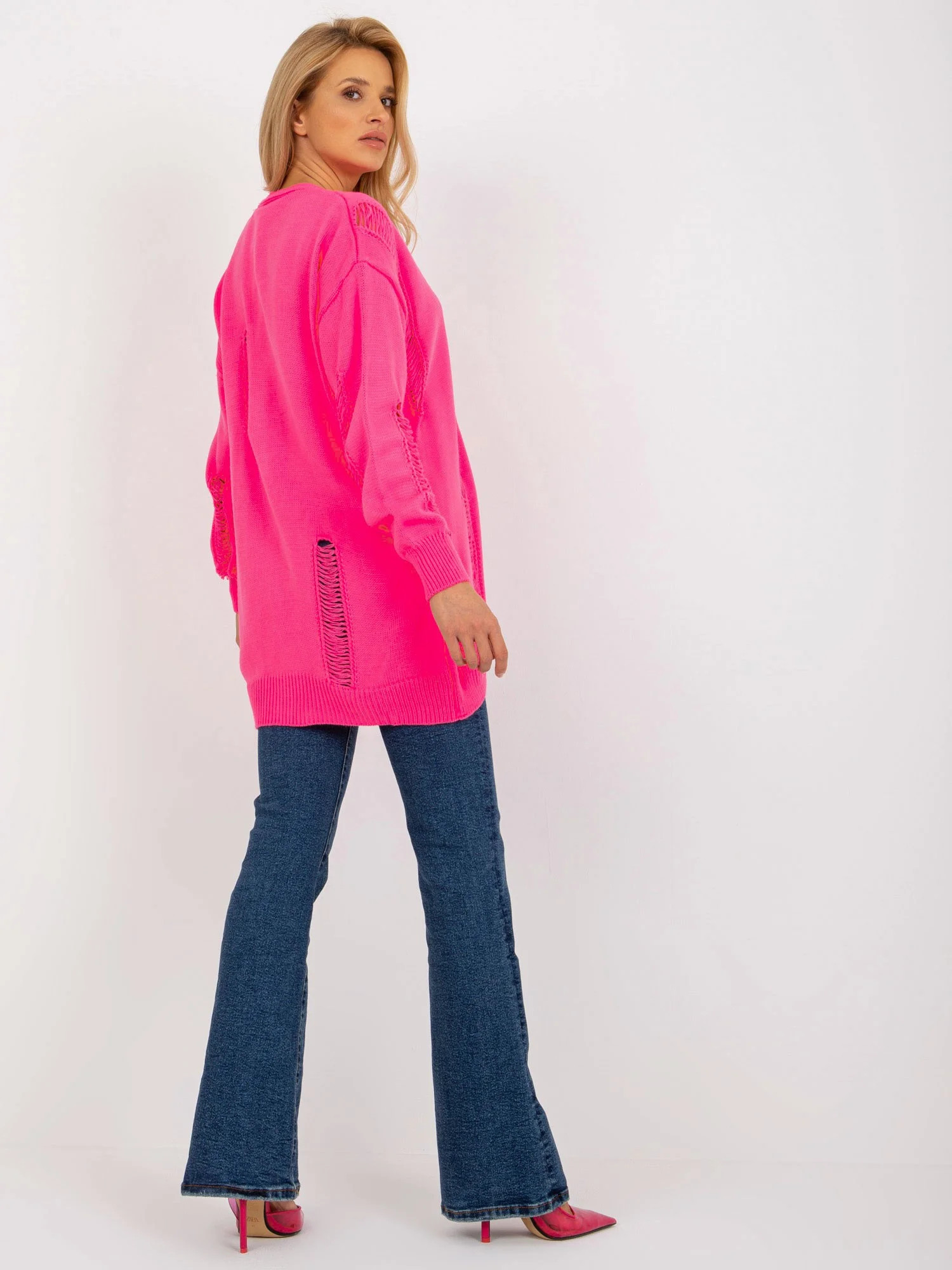 Fluo růžový pletený svetr volného střihu od značky RUE PARIS .