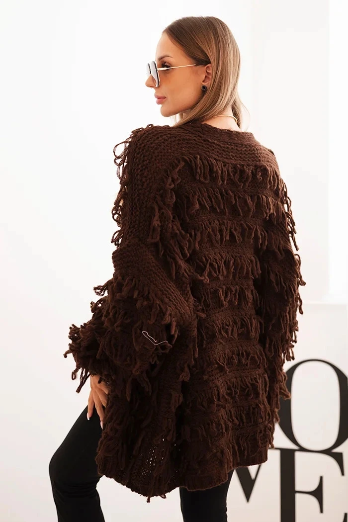 Dámský kardigan s třásněmi a volným střihem hnědý