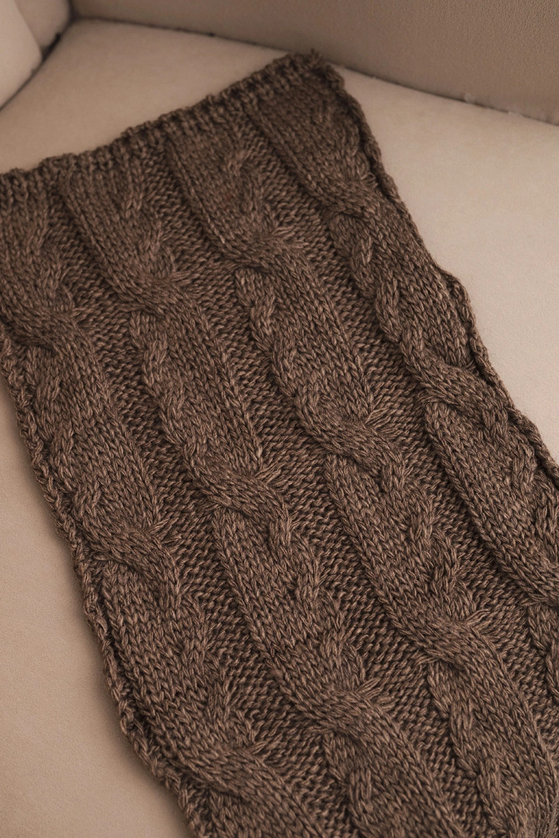 Dámský klasický vlněný šátek s copánkovým vzorem model 21876039 mocca - K-Fashion