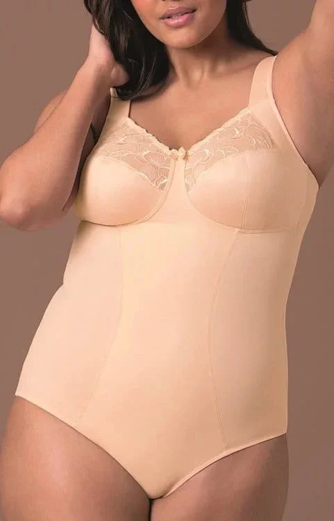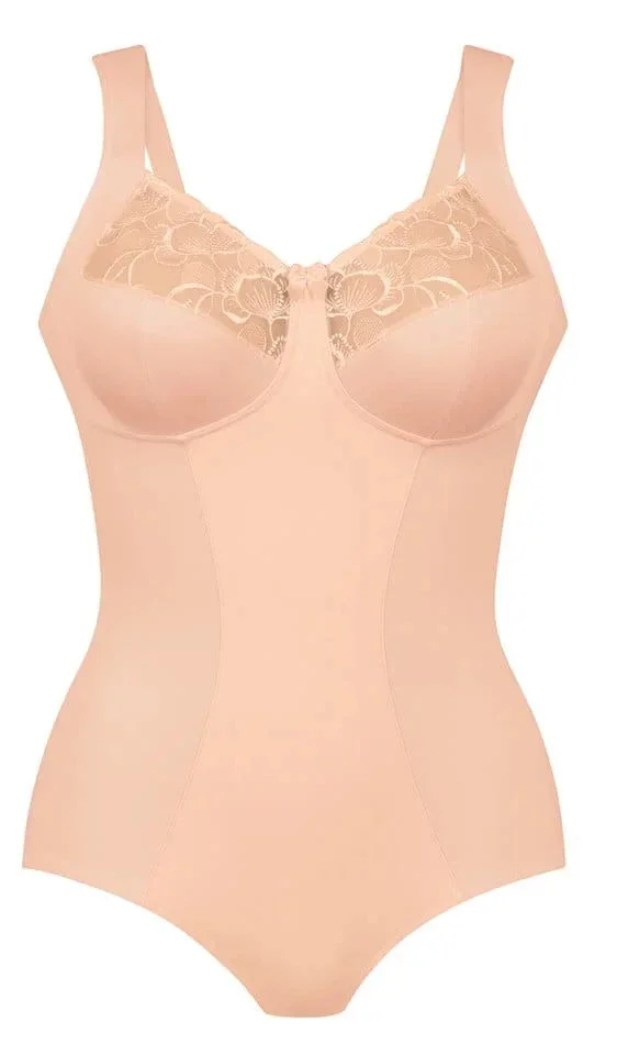 Elegantní zeštíhlující body Anita. Košíčky bez podšívky, vyrobené z "prodyšného", pro tělo příjemného mikrovlákna, zdobené květinovou výšivkou na tylu. Tkaniny nejvyšší kvality zajišťují vysoký komfort nošení. Dokonale přilne k tělu a zároveň poskytuje volnost pohybu. Třídílný košíček s bočními lištami poskytuje stabilní oporu poprsí. Doporučujeme dámám, které ocení pohodlí v kombinaci s tvarováním postavy.