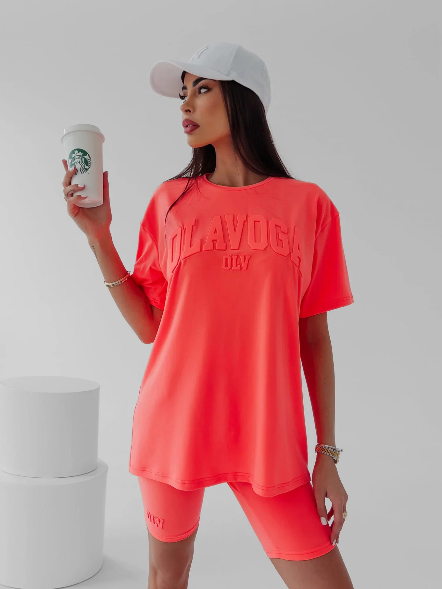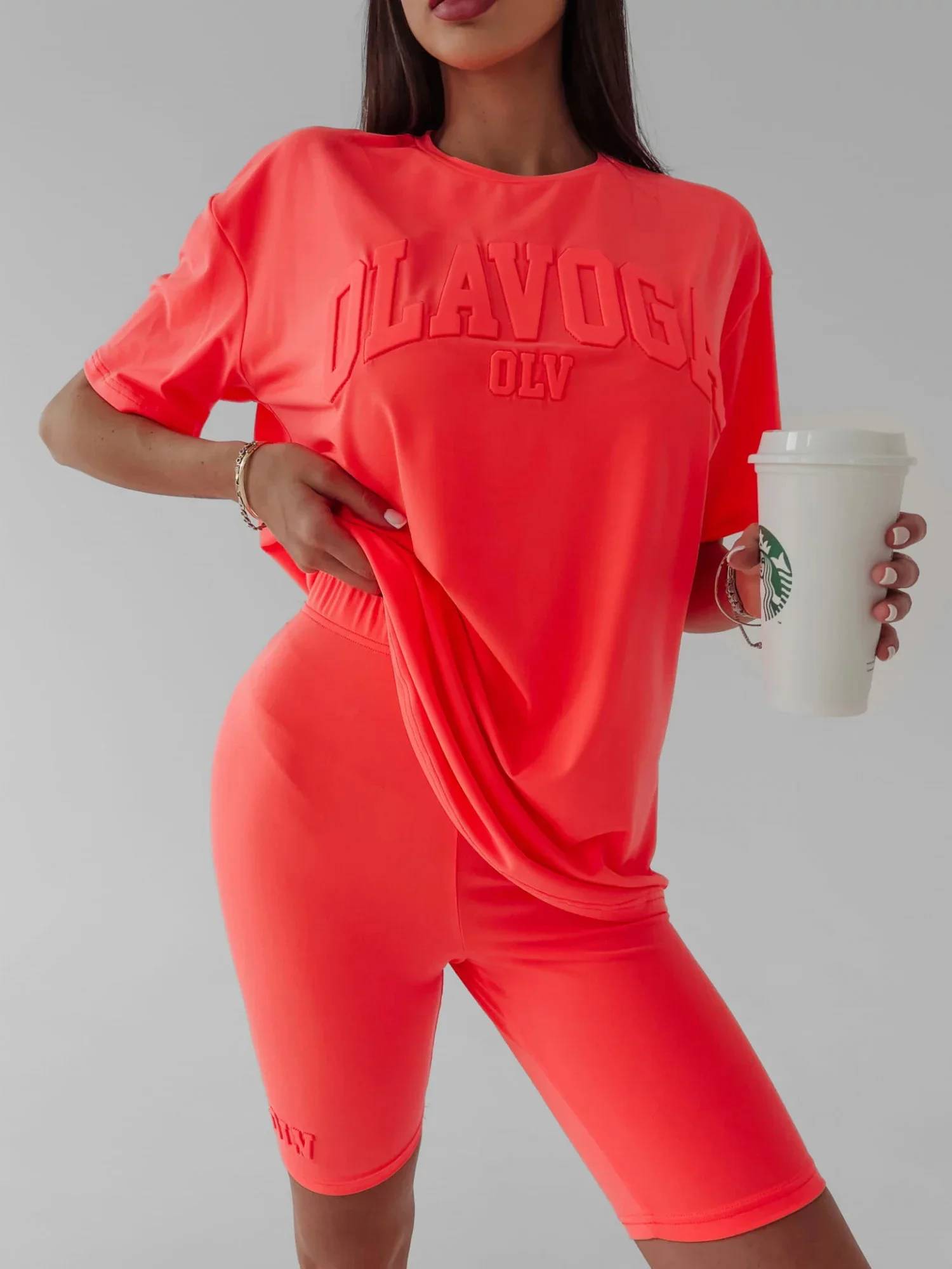 - skládající se z oversized trička s krátkým rukávem a vypasovaných cyklistických šortek,