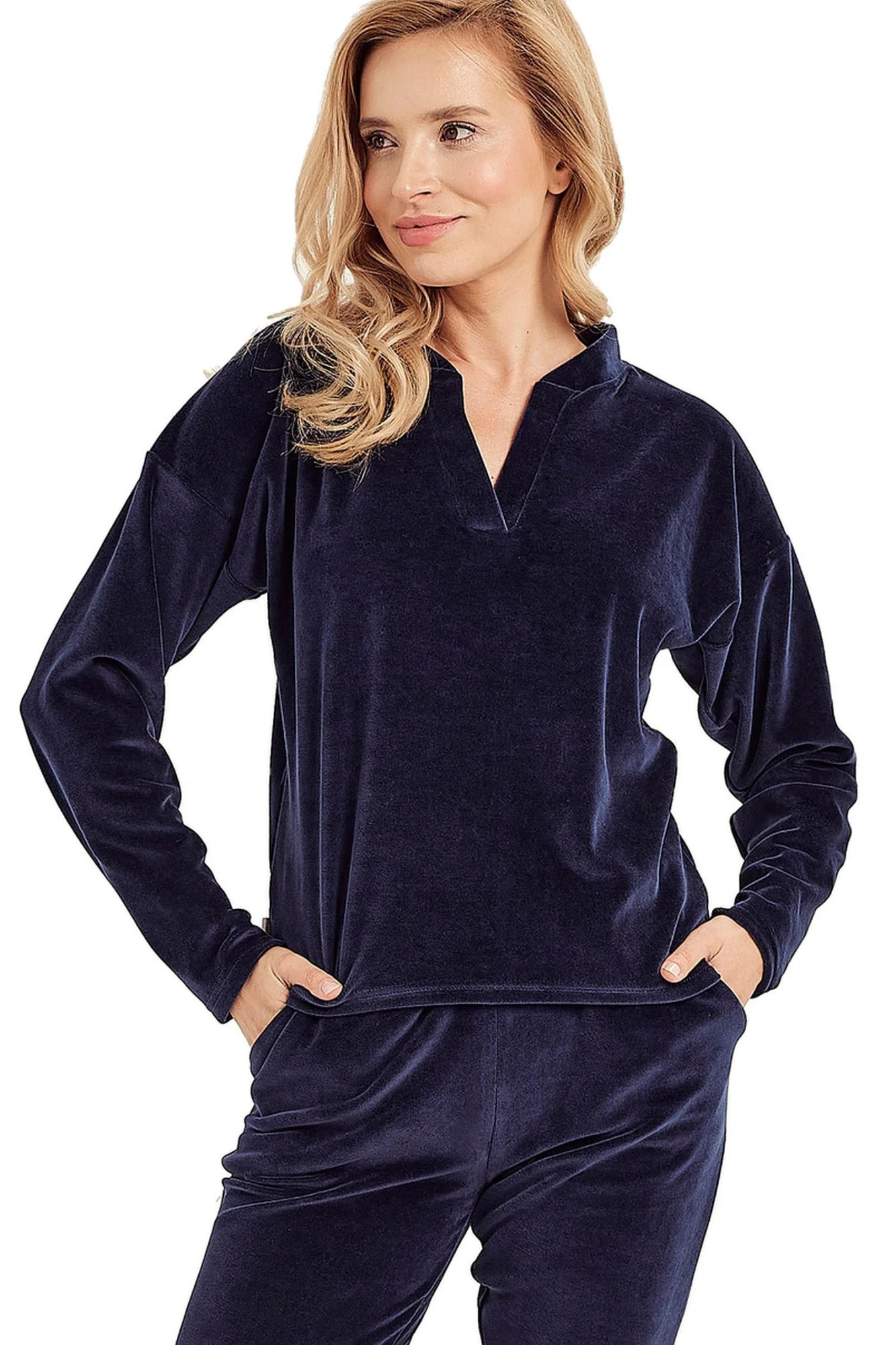 Dámská souprava 3027 Lauren TARO - vyrobená z vysoce kvalitní a měkké bavlny - mikina je tmavě modré barvy s dlouhými rukávy - dlouhé kalhoty tmavě modré barvy s kapsami - prodyšná a zároveň hřejivá