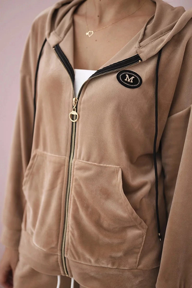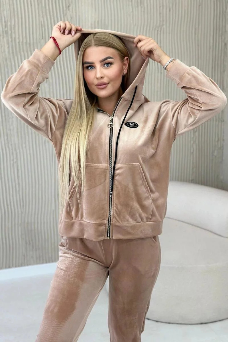 Velurový set skládající se z mikiny a kalhot je perfektní volbou pro chladnější dny, kombinuje styl a pohodlí. Vyrobeno z měkkého sametu příjemného na dotek, poskytuje teplo a pohodlí. Mikina dodává sportovní charakter a chrání před větrem, zatímco kalhoty zaručují volnost pohybu a perfektní střih. Tato sada, která je ideální pro pohodové víkendy, neformální výlety nebo setkání s přáteli, nabízí eleganci a pohodlí v jednom, díky čemuž se budete cítit stylově a pohodlně za každé situace. Velikost je univerzální a bude vhodná pro ženy velikosti S, M nebo L.