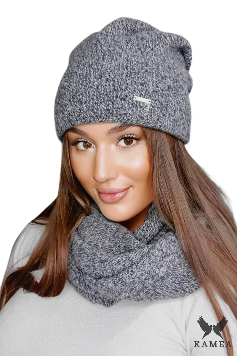 Dámský komplet model 19503049 čepice a šály šedý - Kamea