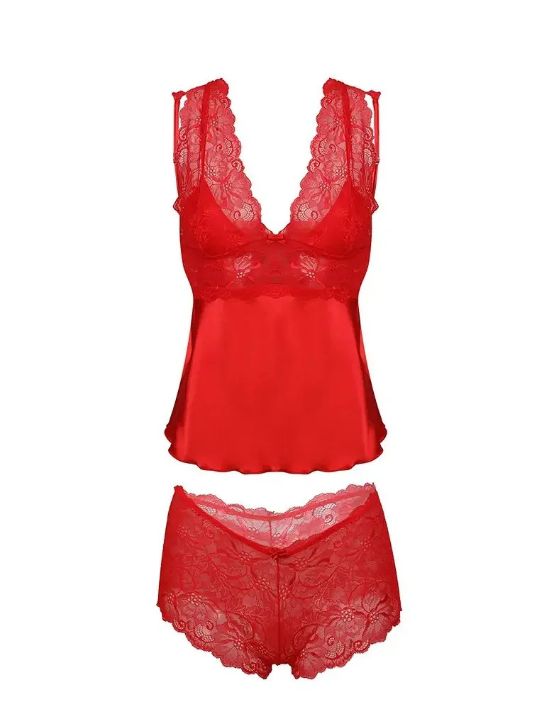 Komplet doplňují krajkové šortky.