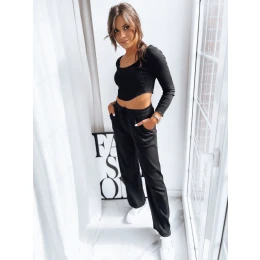 Mimořádně stylový a pohodlný komplet sestávající z širokých kalhot a krátkého asymetrického topu s dlouhým rukávem. Celý komplet je vyroben z žebrovaného materiálu, díky čemuž se dokonale přizpůsobí siluetě. K dispozici ve třech barevných provedeních.