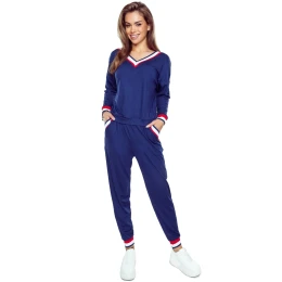 Dámský komplet Fanny blue ELDAR - tmavě modrá barva - z vysoce jakostní viskózy - dlouhé rukávy - dlouhé kalhoty s kapsami - výstřih, manžety, kapsy a nohavice zakončené barevným stahujícím lemem