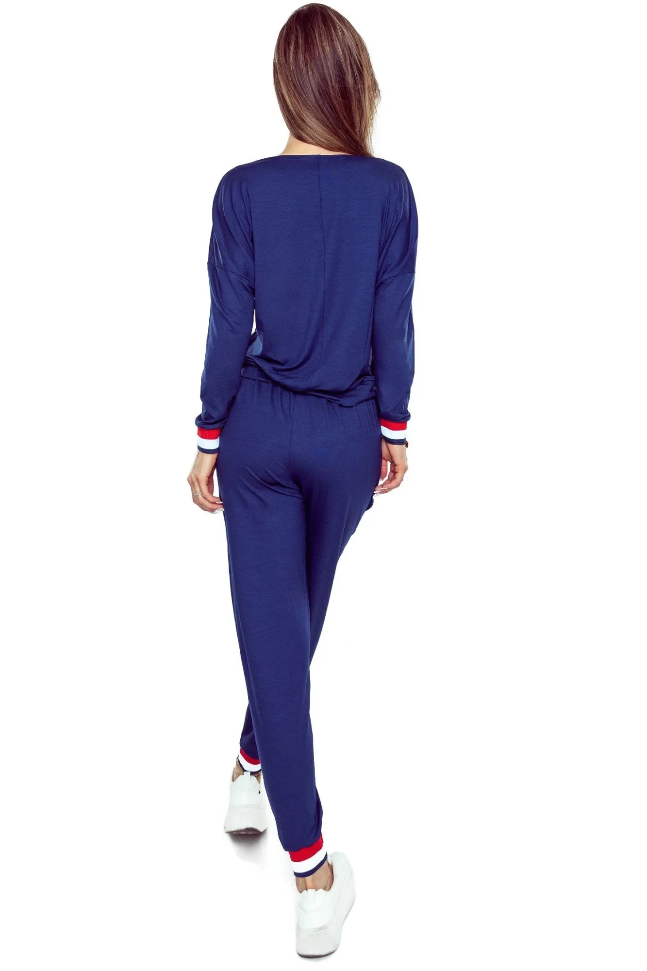 Dámský komplet Fanny blue ELDAR - tmavě modrá barva - z vysoce jakostní viskózy - dlouhé rukávy - dlouhé kalhoty s kapsami - výstřih, manžety, kapsy a nohavice zakončené barevným stahujícím lememMateriálové složení: 90% viskóza + 5% polyester + 5% elastan