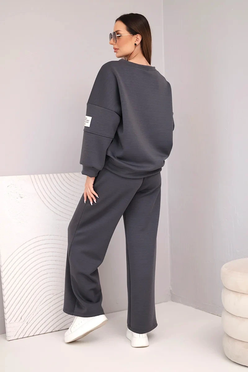 Vsadť na pohodlí a styl s tímto italským dámským teplákovým setem, který spojuje volnou mikinu s spadlým ramenním švem a pohodlnými kalhotami se širokým nohavicemi. Tento set je ideální volbou na každý den – hodí se jak doma, na procházce, tak i na neformální setkání.