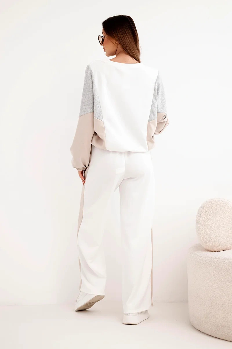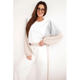 Mikina volného střihu s nízkou linií ramen a elastickými manžetami na rukávech zajišťuje volnost pohybu a výjimečné pohodlí. Kontrastní vsadky jí dodávají módní, moderní charakter. Kalhoty s elastickým pasem a širokým střihem garantují komfort po celý den a jejich minimalistický střih krásně zdůrazňuje siluetu.