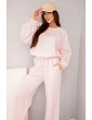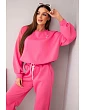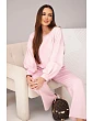 Tento pohodlný dámský teplákový komplet je ideální nabídkou pro ženy, které si cení pohodlí a módního vzhledu. Mikina s dlouhým rukávem a elastickým lemem dole zajišťuje dokonalé přizpůsobení postavě, zatímco jemný detail v podobě ozdobné aplikace u výstřihu přidává stylový akcent.