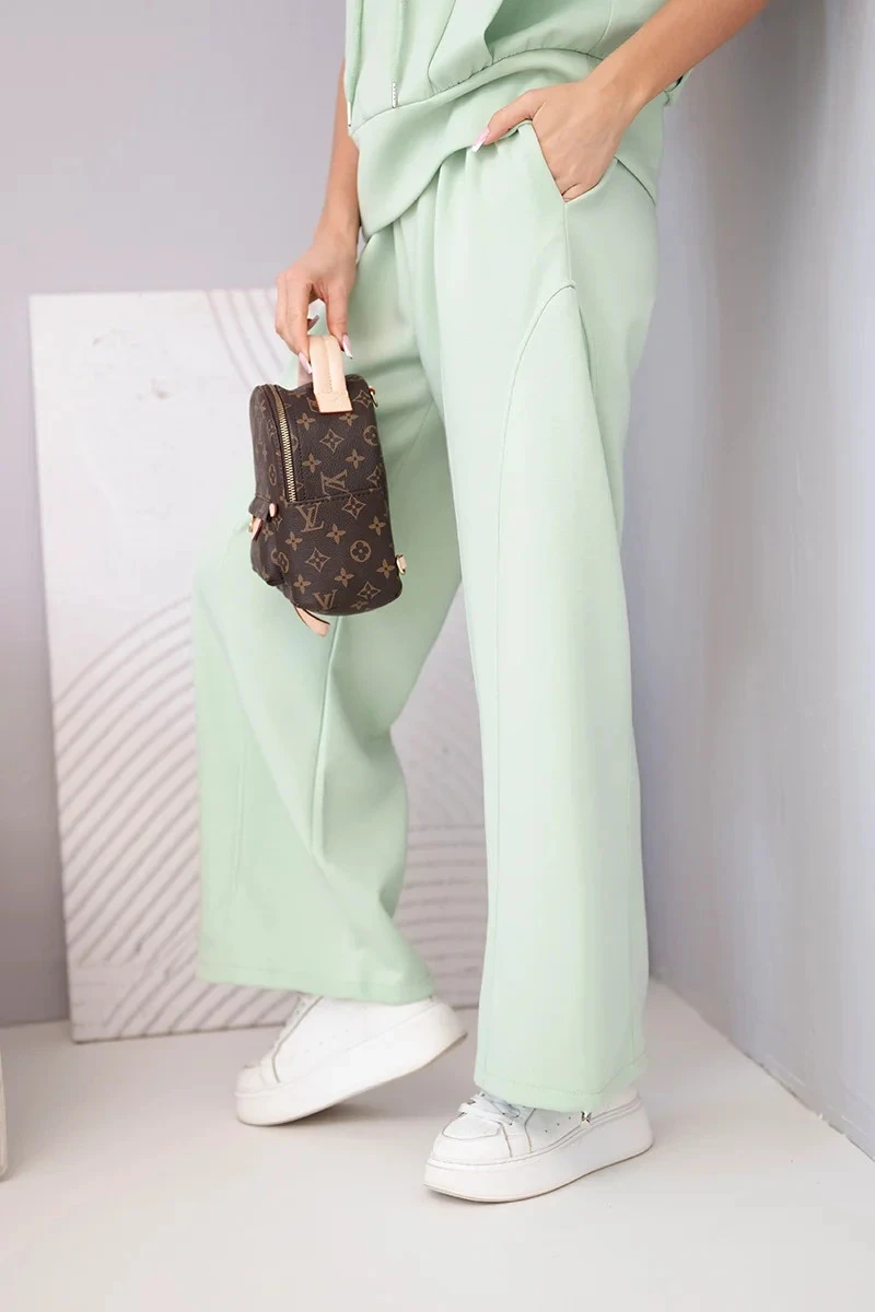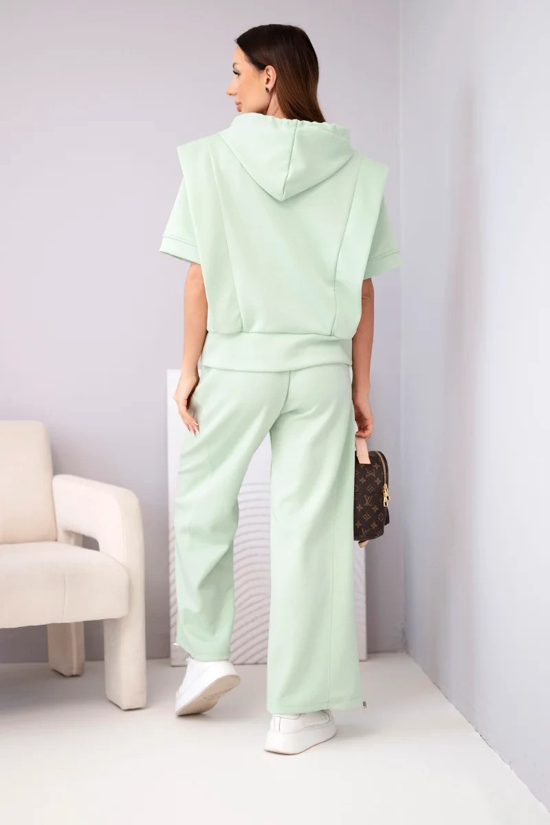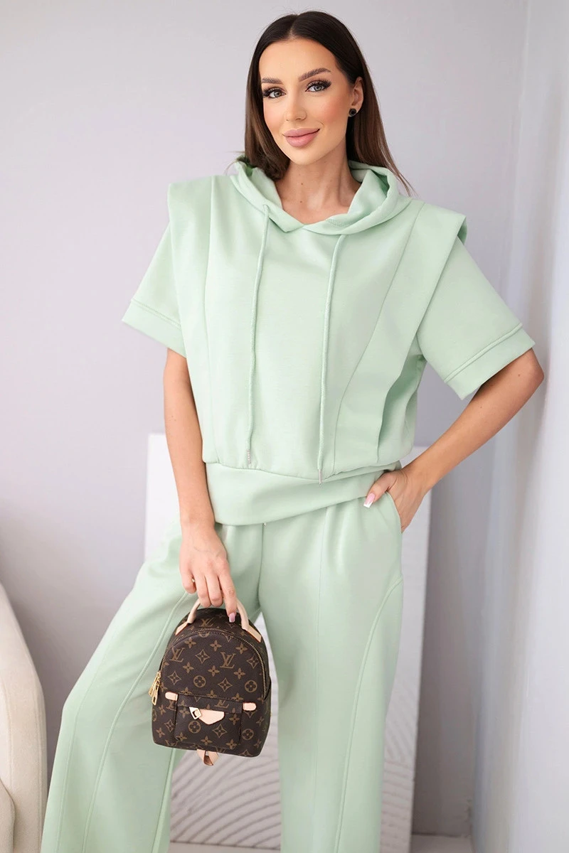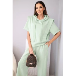 Dámský komplet máslová mikina s kapucí a volné kalhoty se šňůrkou tmavě mátová