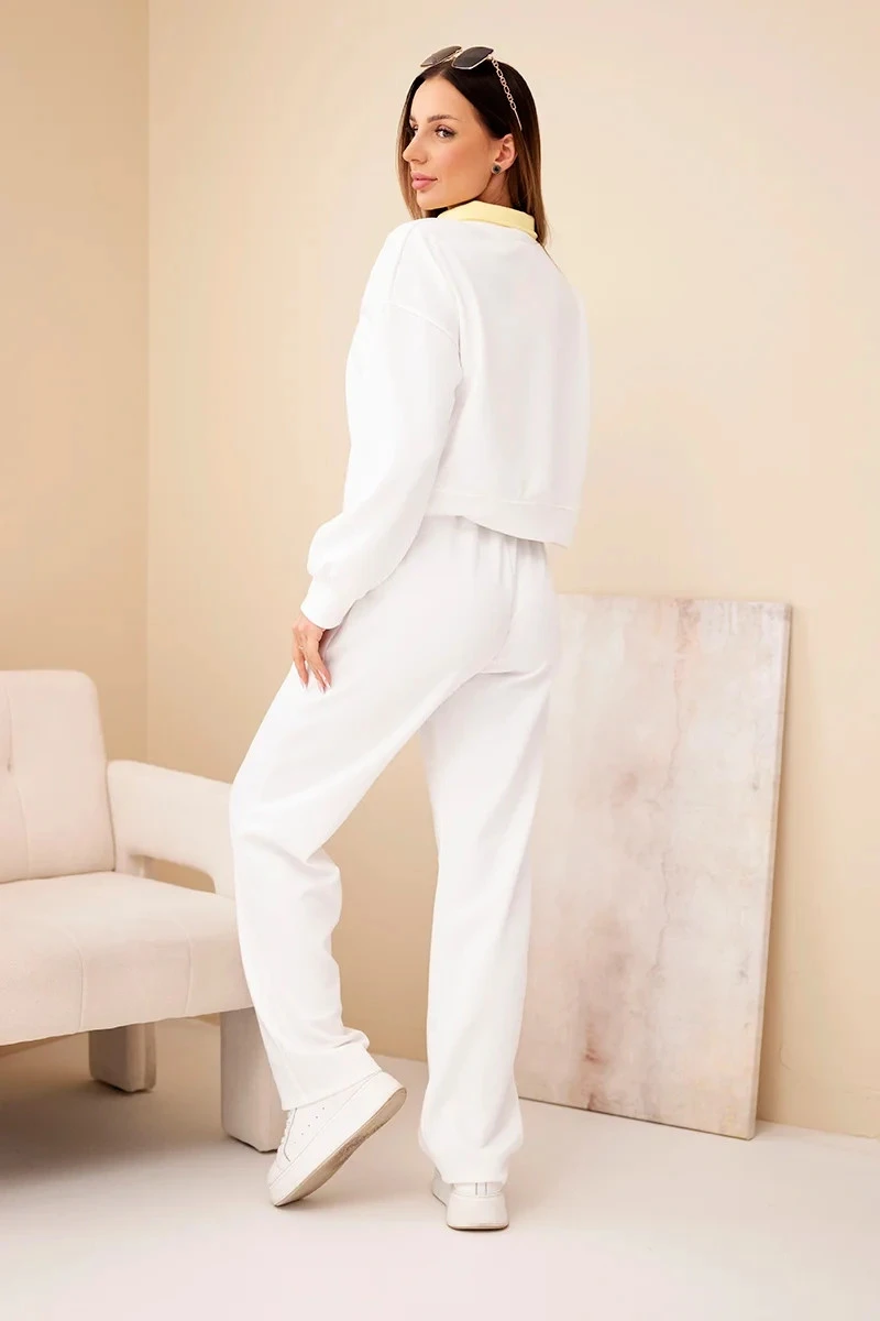 Dámský komplet máslová mikina s límečkem a rovné kalhoty ecru