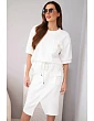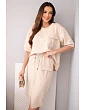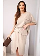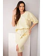 Stylový dámský máslový komplet je ideální volbou pro ženy, které si cení pohodlí a módního vzhledu v jednom. Souprava se skládá z volného topu s krátkým rukávem a přiléhavé midi sukně s elastickým pasem. Hladký materiál s příjemnou, měkkou strukturou se krásně přizpůsobí postavě a zajišťuje pohodlí po celý den. Ozdobná kapsa typu cargo na topu i sukni dodává celku moderní charakter a zavazování v pase zvýrazňuje ženskou siluetu.