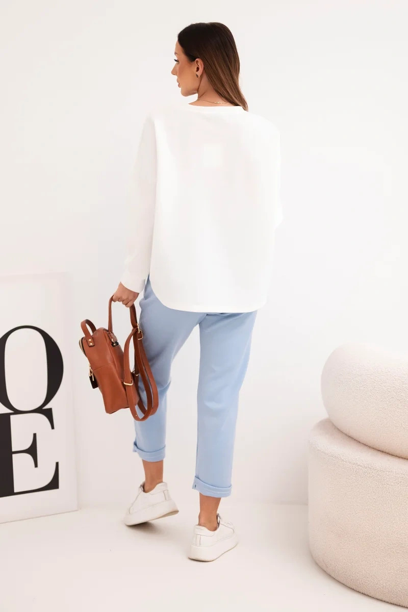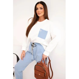 Dámský komplet máslový s kontrastní kapsou modrý