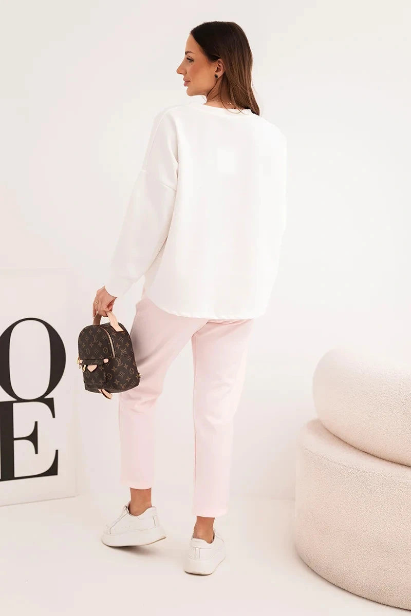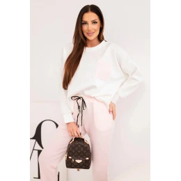 • Dámský komplet máslový s kontrastní kapsou pudrově růžový