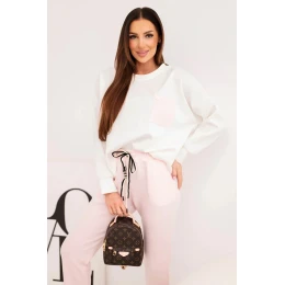 Dámský komplet máslový s kontrastní kapsou pudrově růžový