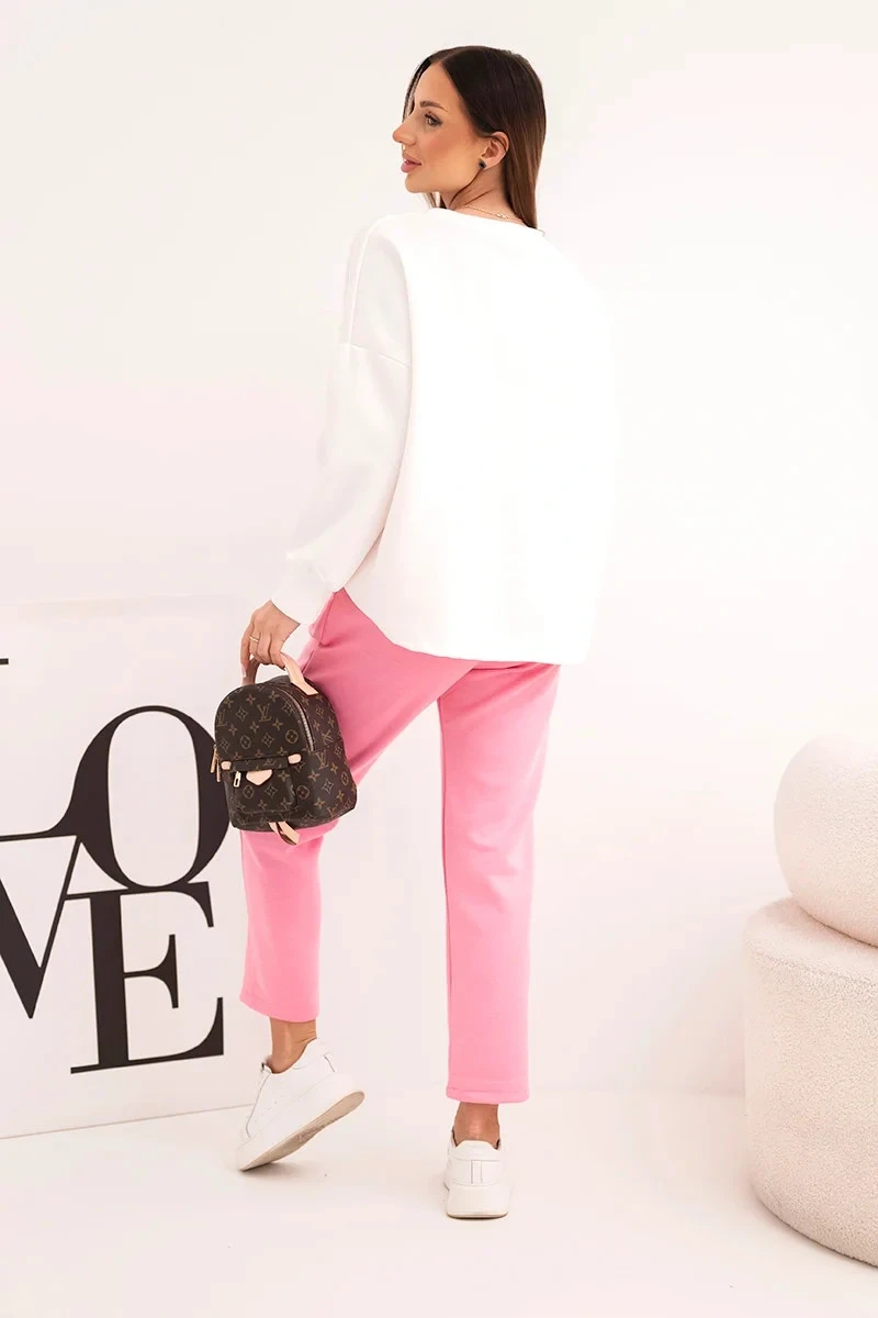 Dámský komplet máslový s kontrastní kapsou světle růžový