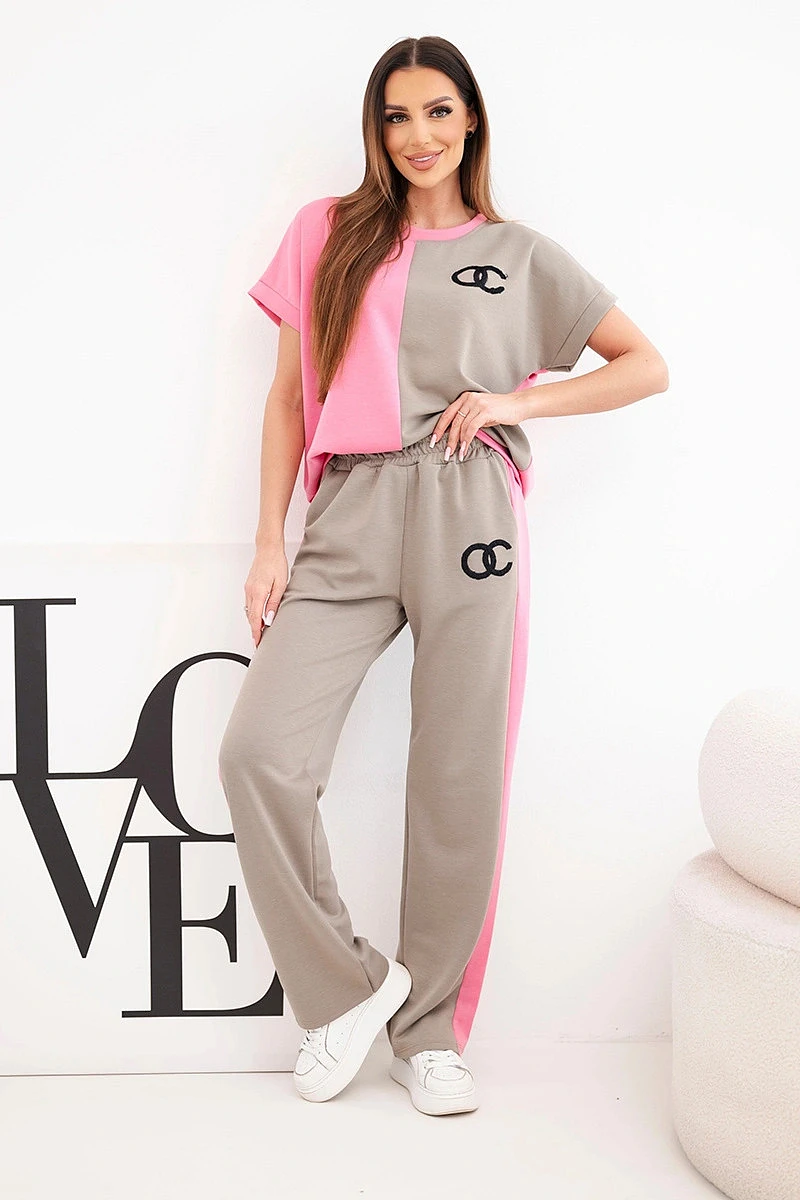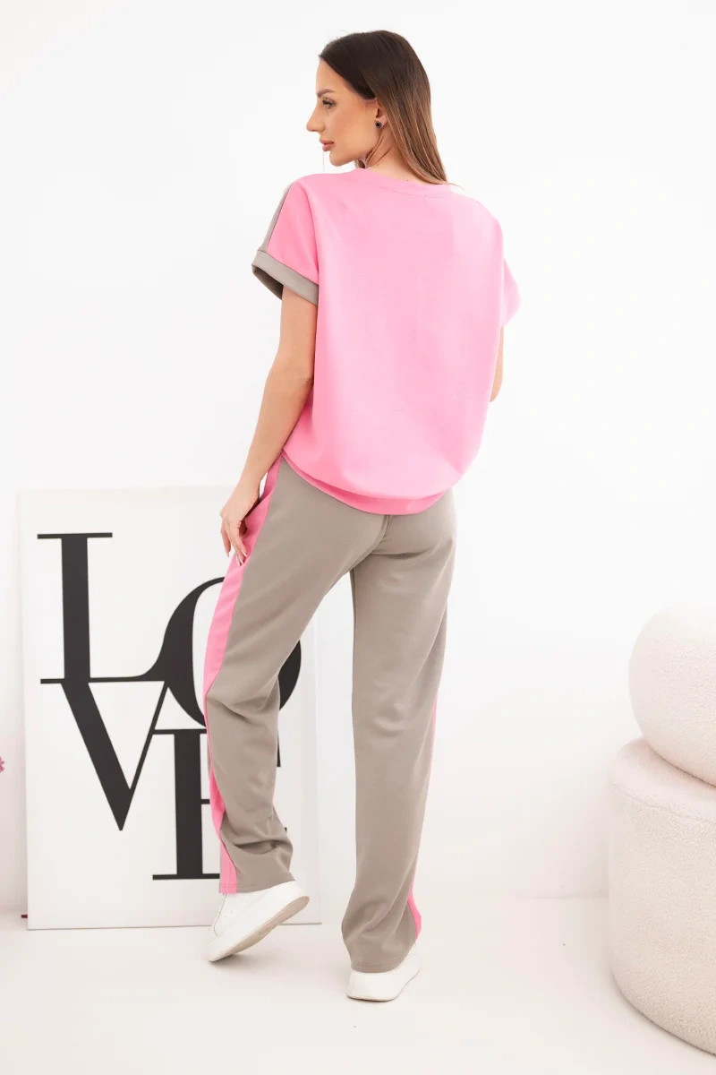 Dámský komplet máslový s oversize mikinou a širokými kalhotami růžový + fango