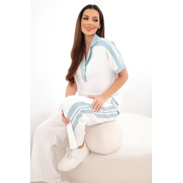 Dámský komplet máslový s polo mikinou a širokými kalhotami tmavě mátová