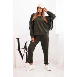 Dámský komplet máslový s třásněmi na rukávech khaki