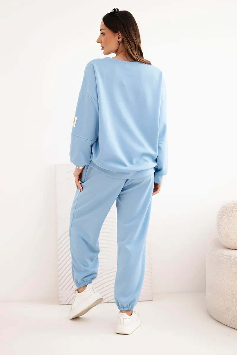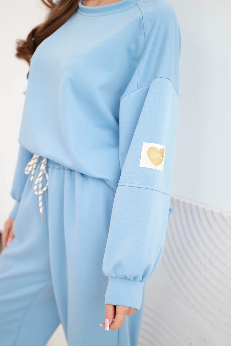 Dámský komplet máslový s volnou mikinou a kalhotami s nápisem LOVE modrý