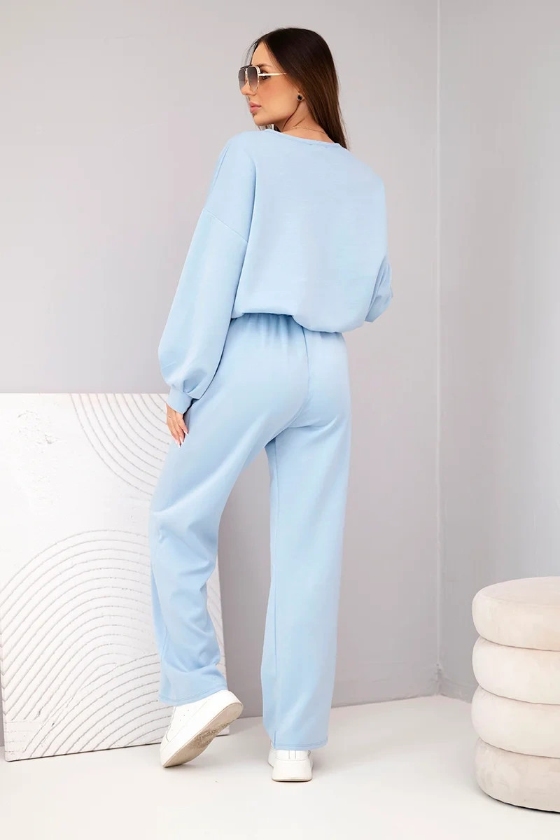 Dámský komplet máslový svetr s broží a kalhoty s model 21921256 nohavicí modrý - K-Fashion