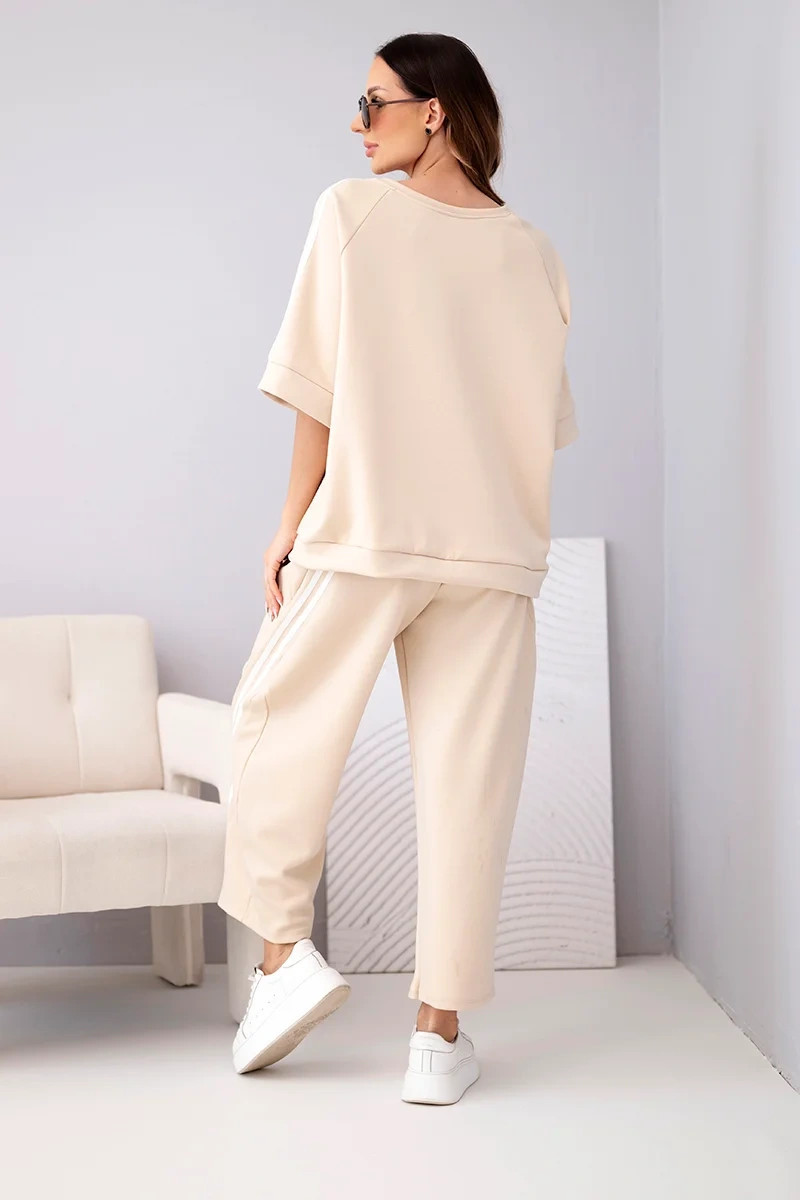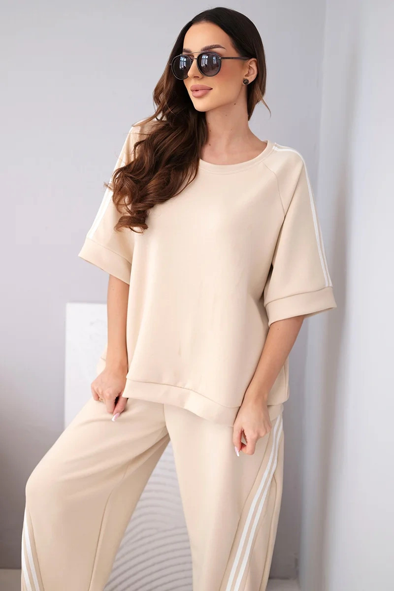Dámský komplet máslový z viskózy mikina a kalhoty s lampasy béžový
