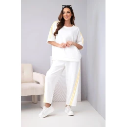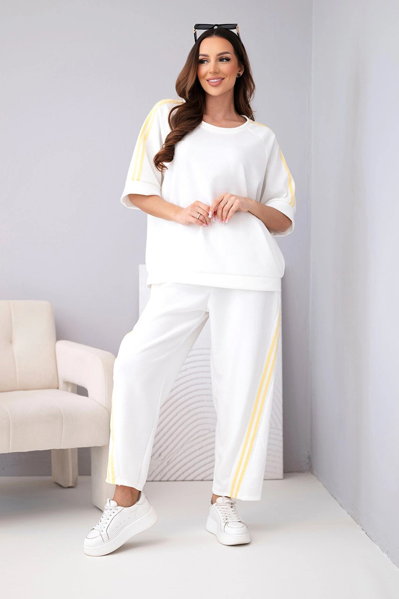 Dámský komplet máslový z viskózy mikina a kalhoty s lampasy bílý