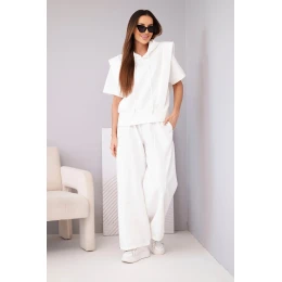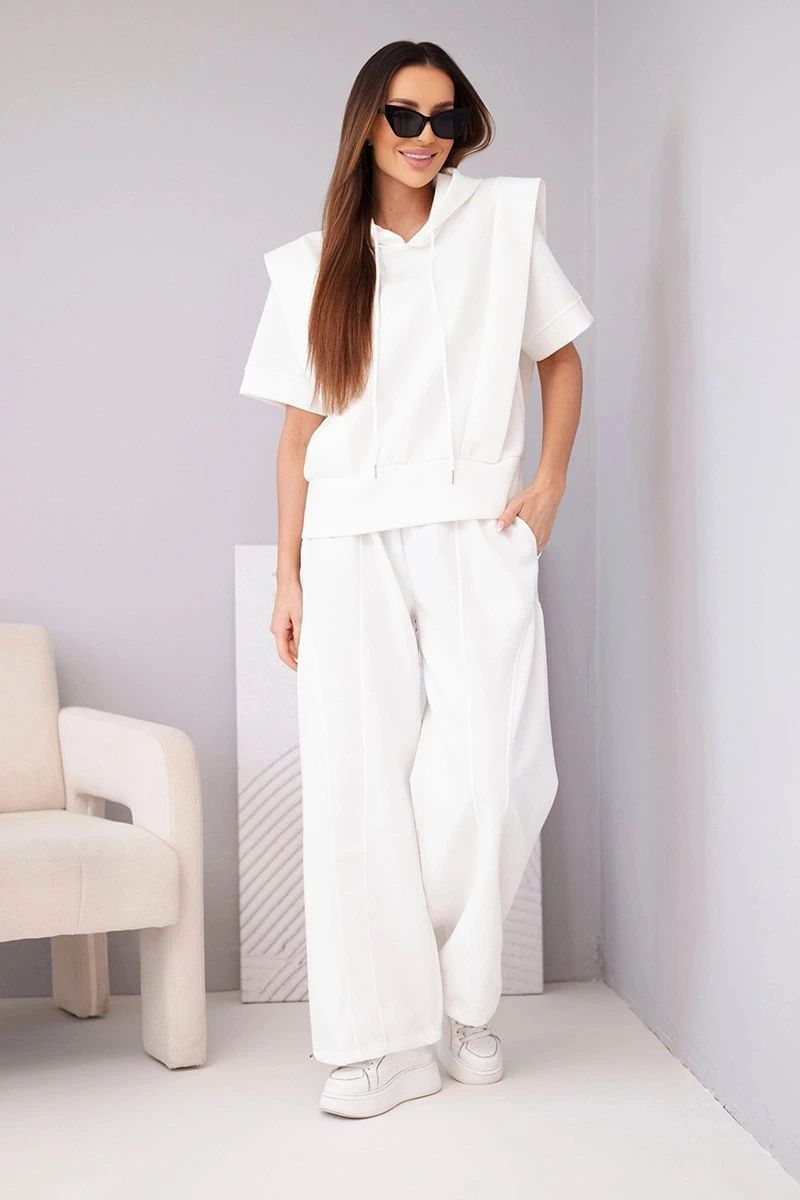 Dámský komplet mikina s kapucí a volné kalhoty se šňůrkou máslový ecru
