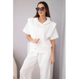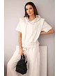 Dámský komplet mikina s kapucí a volné kalhoty se šňůrkou máslový ecru