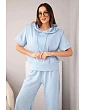 Díky vysokému obsahu viskózy je komplet měkký, prodyšný a příjemný k pokožce. Přídavek elastanu způsobuje, že materiál se jemně roztahuje, což zajišťuje ještě větší pohodlí při nošení. Je to univerzální dámský komplet, který spojuje pohodlí a módní styl.