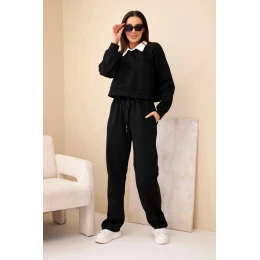 Dámský komplet model 21921232 mikina s límečkem a rovné kalhoty černý - K-Fashion
