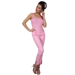 Dámský komplet Kame Livco - z příjemného elastického materiálu vypadá romanticky a zároveň luxusně - košilka a kalhoty jsou zdobené vkusnými výšivkami a rozparky - na širokých ramínkáchMateriálové složení: 95% bavlna + 5% elastan