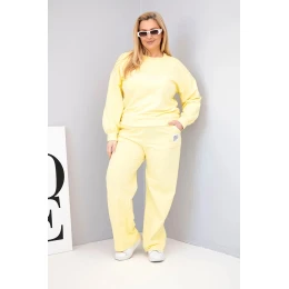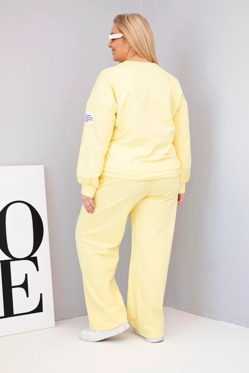 Dámský komplet Plus Size bavlněný s volnou mikinou a kalhotami s širokou nohavicí žlutý