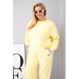 Dámský komplet Plus Size bavlněný s volnou mikinou a kalhotami s širokou nohavicí žlutý
