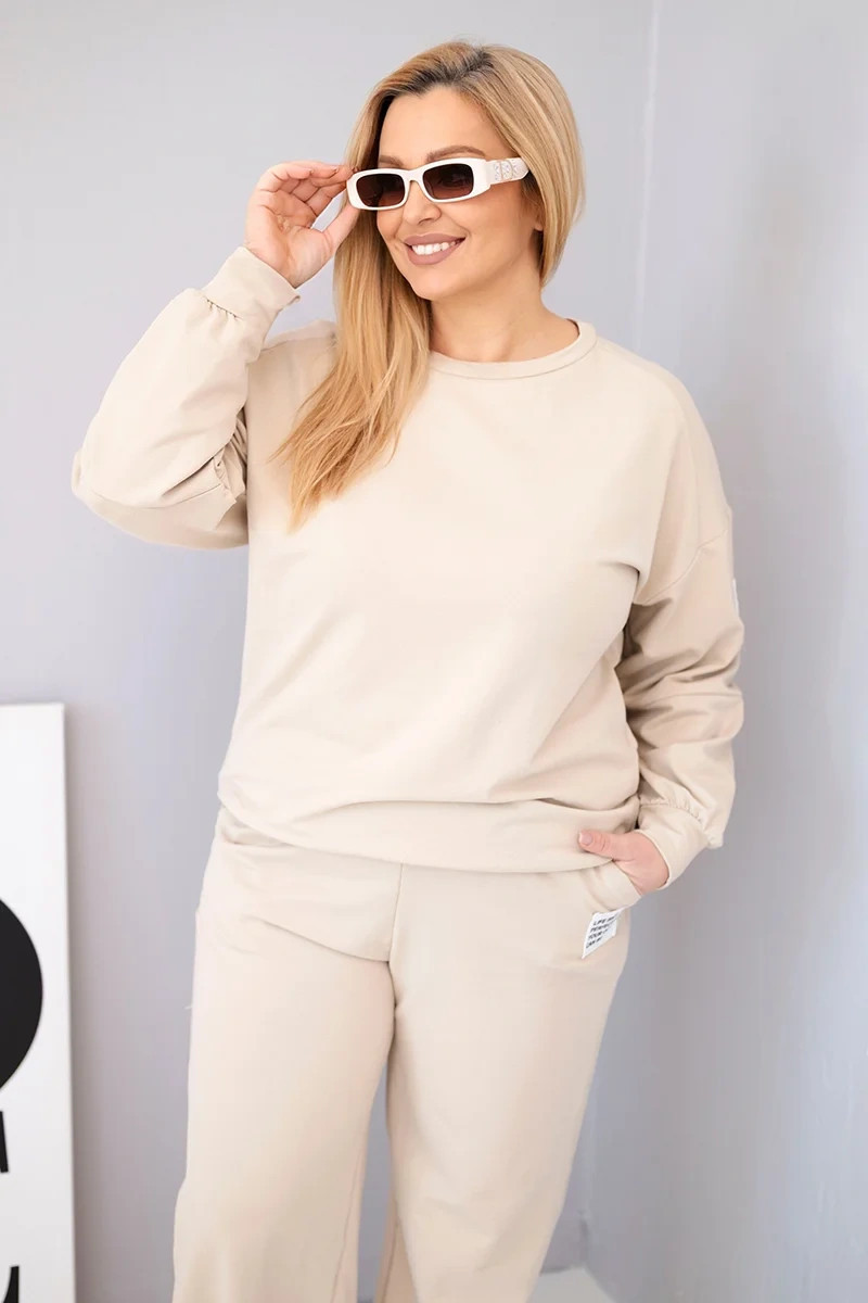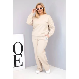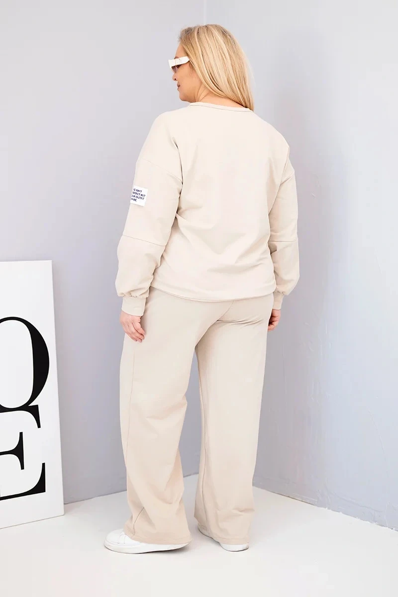 Dámský komplet Plus Size bavlněný s volnou mikinou a kalhotami s širokým nohavicí béžový