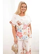Dámská plus size souprava s halenkou a kalhotami s květinovým vzorem je vynikající volbou pro ženy, které si cení pohodlí, módního vzhledu a volnosti nošení každý den. Tento výjimečný komplet okouzlí efektním květinovým vzorem, který dodává celému modelu lehkost a ženský charakter. Volná halenka zajišťuje komfort a pěkně padne na postavu, zatímco dlouhé kalhoty s elastickým pasem zaručují pohodlí po celý den. Je to ideální volba jak na rodinná setkání, procházky, dovolenou, tak i na každodenní outfity v elegantnějším provedení.