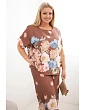 Dámská plus size souprava s halenkou a kalhotami s květinovým vzorem je vynikající volbou pro ženy, které si cení pohodlí, módního vzhledu a volnosti nošení každý den. Tento výjimečný komplet okouzlí efektním květinovým vzorem, který dodává celému modelu lehkost a ženský charakter. Volná halenka zajišťuje komfort a pěkně padne na postavu, zatímco dlouhé kalhoty s elastickým pasem zaručují pohodlí po celý den. Je to ideální volba jak na rodinná setkání, procházky, dovolenou, tak i na každodenní outfity v elegantnějším provedení.