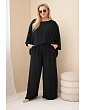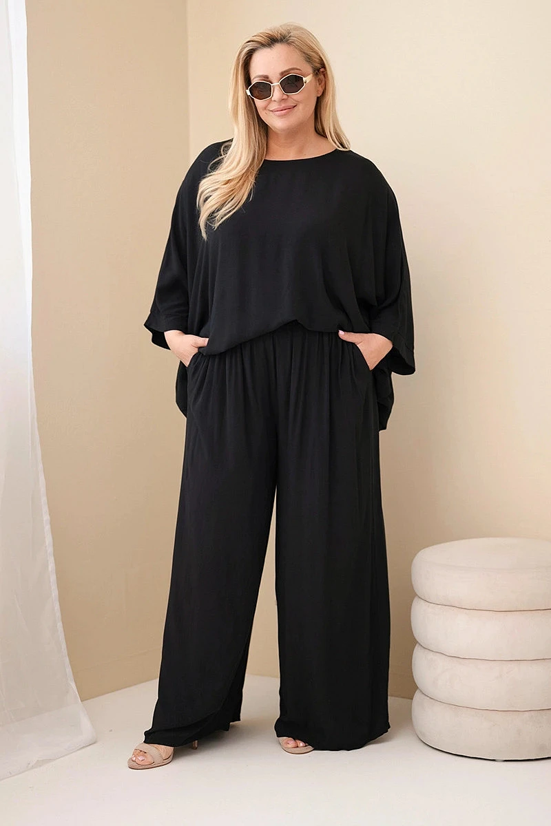 Dámský komplet Plus Size z viskózy se širokými kalhotami a halenkou černý