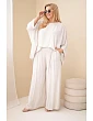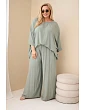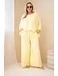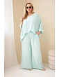 Model je vyroben z vysoce kvalitního materiálu, díky čemuž je materiál prodyšný, měkký a příjemný na dotek. Souprava se na postavě velmi dobře prezentuje a její univerzální střih umožňuje nosit ji dohromady nebo samostatně, čímž vytvoříte mnoho módních kombinací. Široká nohavice opticky zeštíhluje nohy a volnější halenka dodává celku lehkost a volnost. Italská výroba je dalším plusem, který zdůrazňuje pečlivé zpracování a módní styl inspirovaný italskou elegancí.