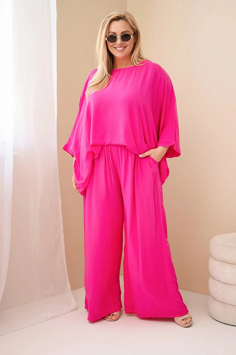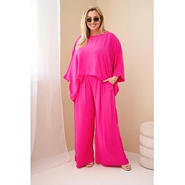 Dámský komplet Plus Size z viskózy se širokými kalhotami a halenkou fuchsiová