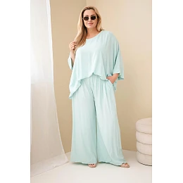 Dámský komplet Plus Size z viskózy se širokými kalhotami a halenkou mátový